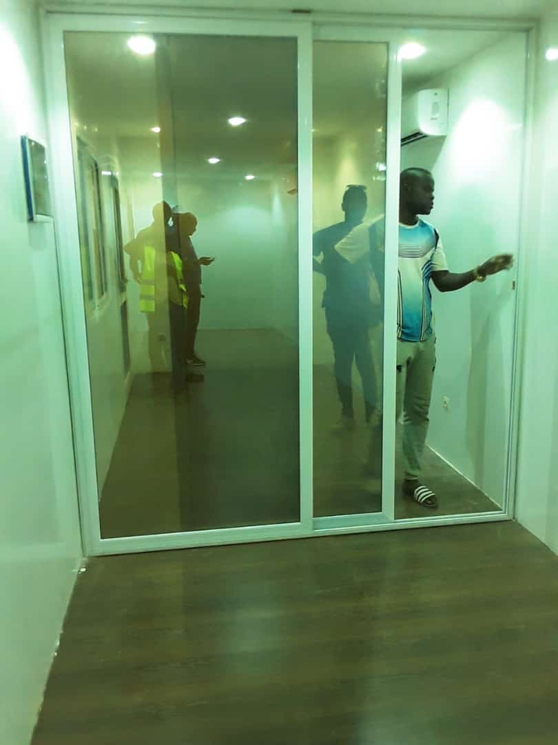 Exemple de conteneur Hopital FANN Bureau avec plafond 60x60 et spot sol en carreau